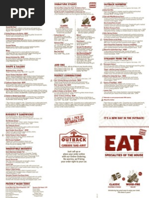 Outback Steakhouse Menu Pdf Pdf Salad Hamburgers
